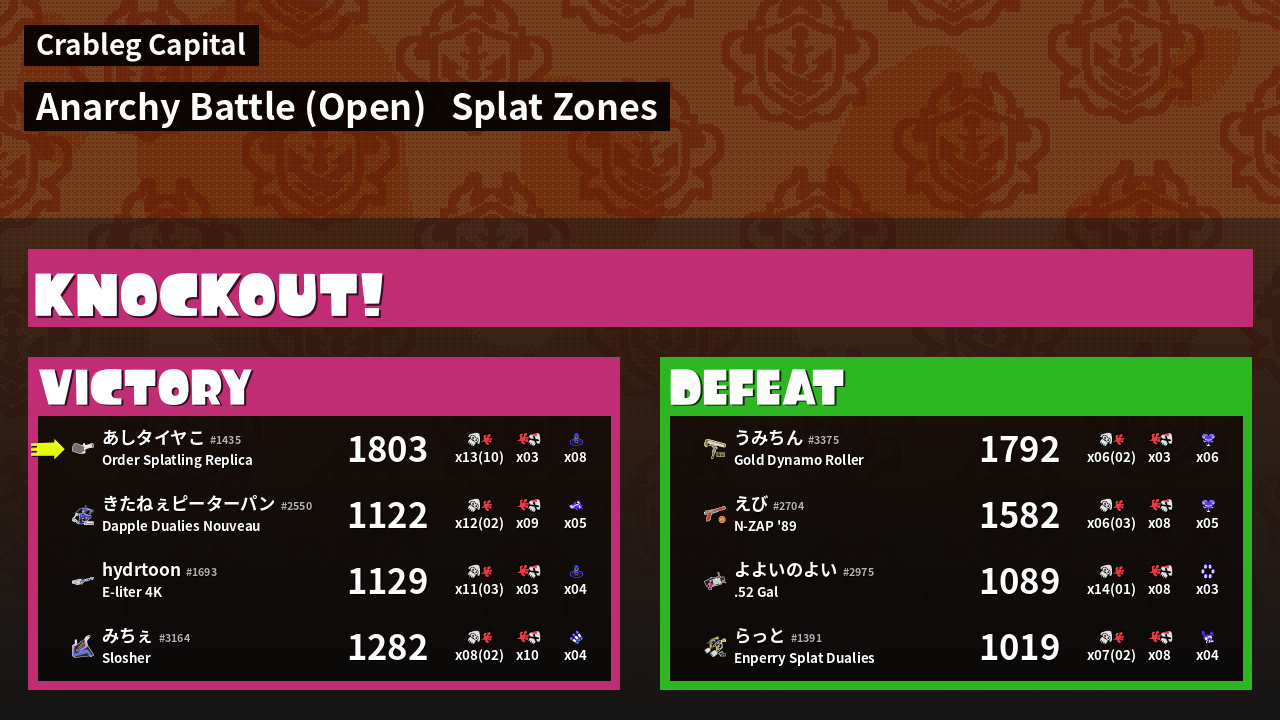 | Mode | Splat Zones - Anarchy Battle (Open) | ||