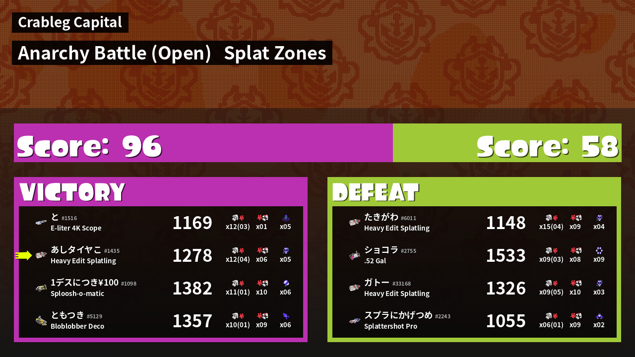| Mode | Splat Zones - Anarchy Battle (Open) | ||