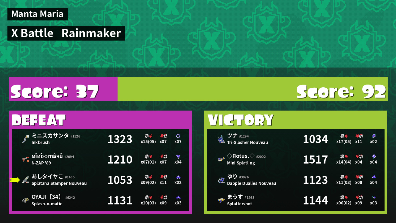 | Mode | Rainmaker - X Battle | ||