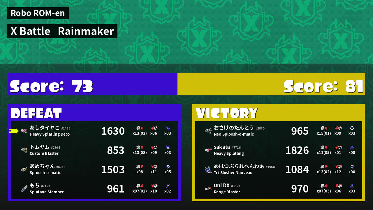 | Mode | Rainmaker - X Battle | ||