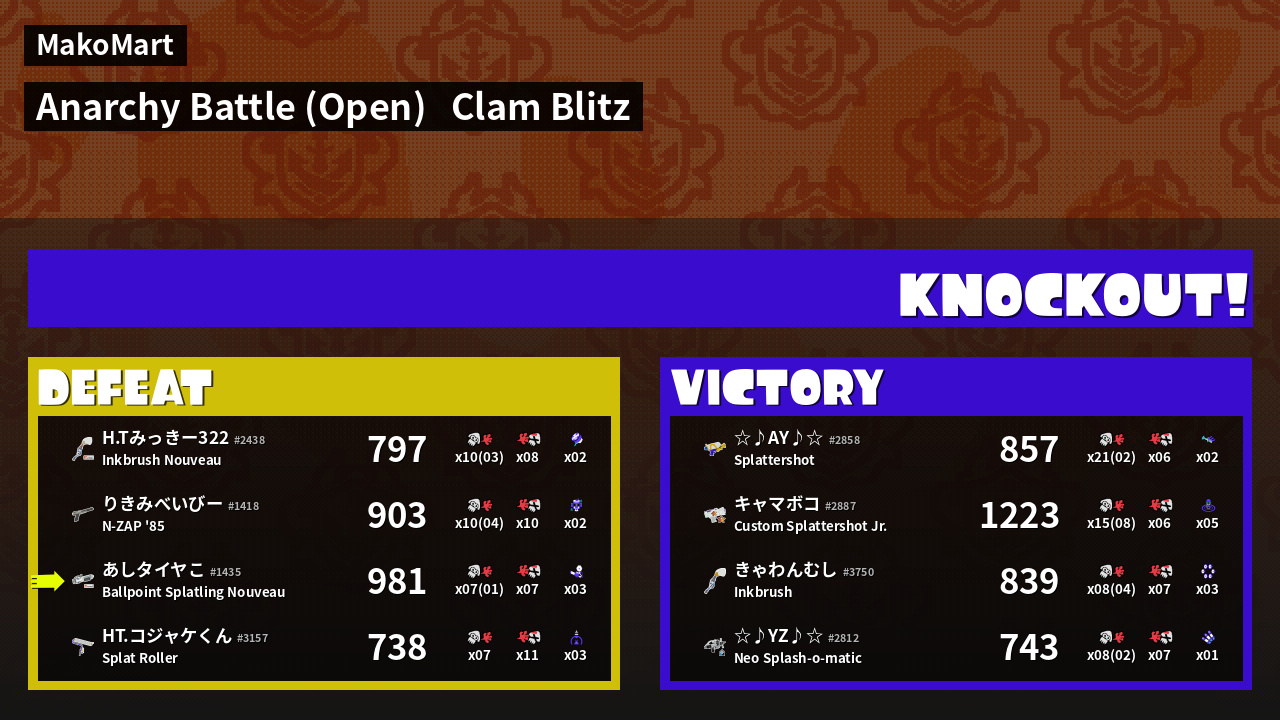 | Mode | Clam Blitz - Anarchy Battle (Open) | ||