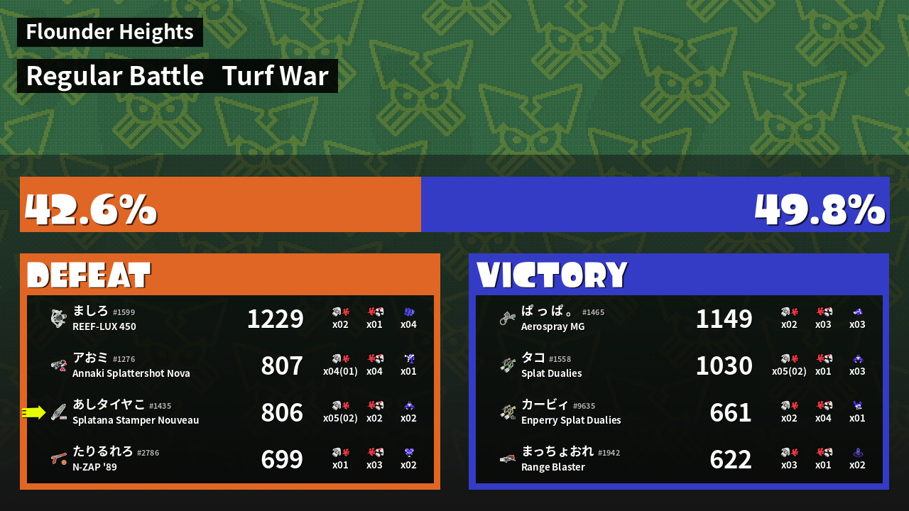 | Mode | Turf War - Regular Battle | ||