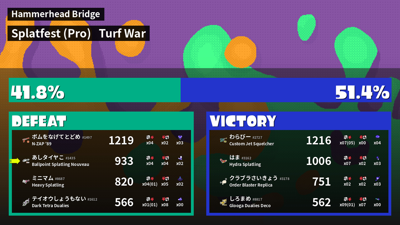 | Medals | #1 Overall Splatter #1 Popular Target #1 Home-Base Inker | ||