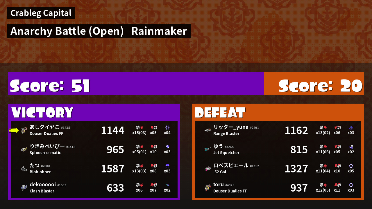 | Mode | Rainmaker - Anarchy Battle (Open) | ||