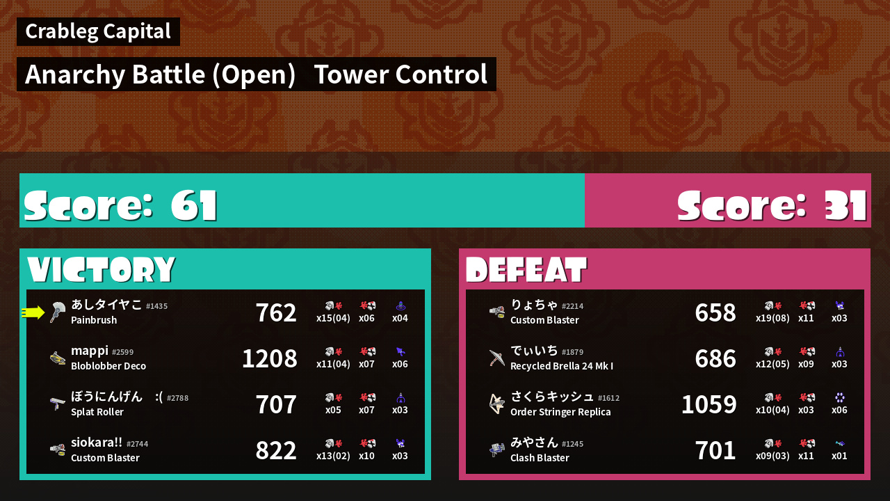 | Mode | Tower Control - Anarchy Battle (Open) | ||