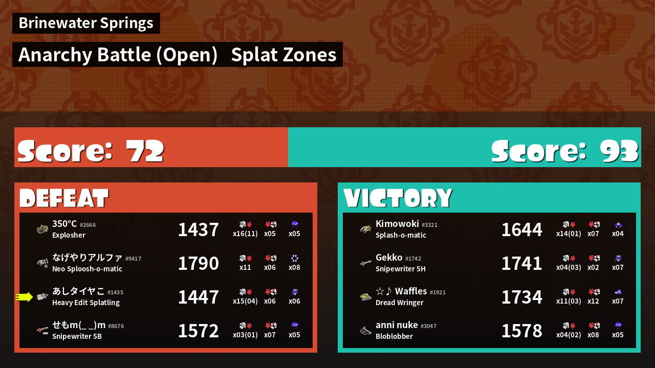 | Mode | Splat Zones - Anarchy Battle (Open) | ||