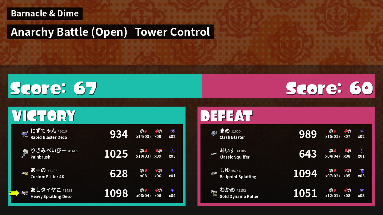 | Mode | Tower Control - Anarchy Battle (Open) | ||