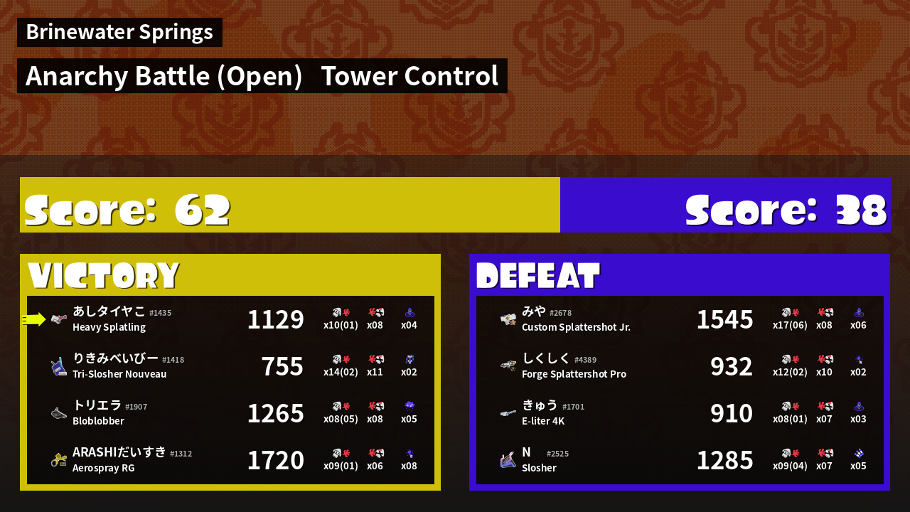 | Mode | Tower Control - Anarchy Battle (Open) | ||