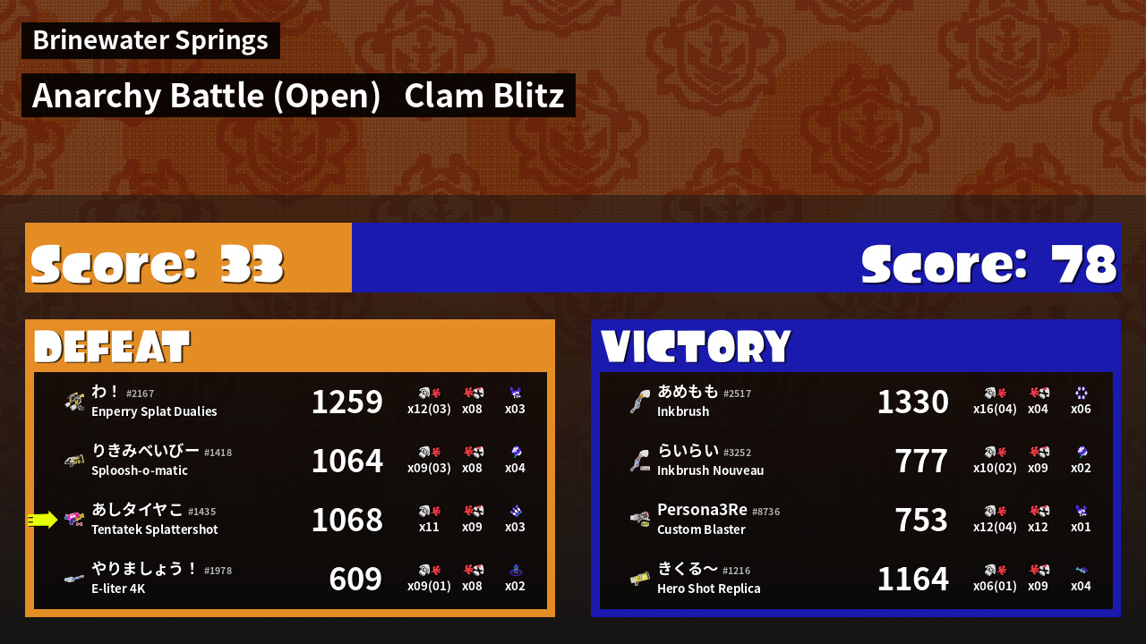 | Mode | Clam Blitz - Anarchy Battle (Open) | ||