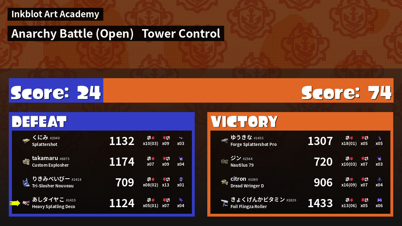 | Mode | Tower Control - Anarchy Battle (Open) | ||