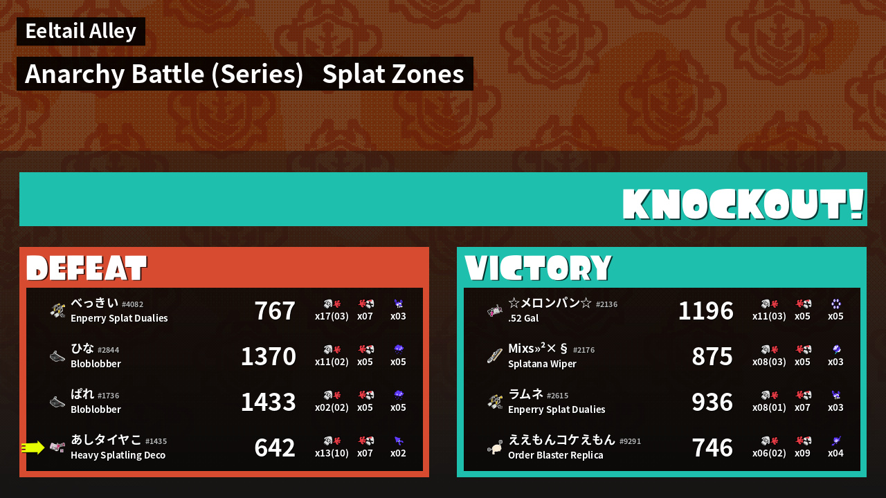 | Mode | Splat Zones - Anarchy Battle (Series) | ||
