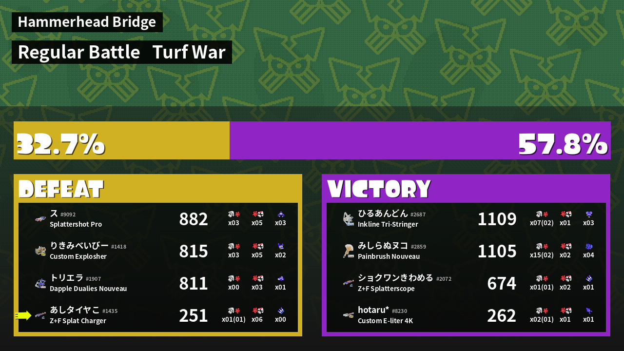 | Medals | #1 Super Jump Spot #1 Splat Assister #1 Ground Traveler | ||