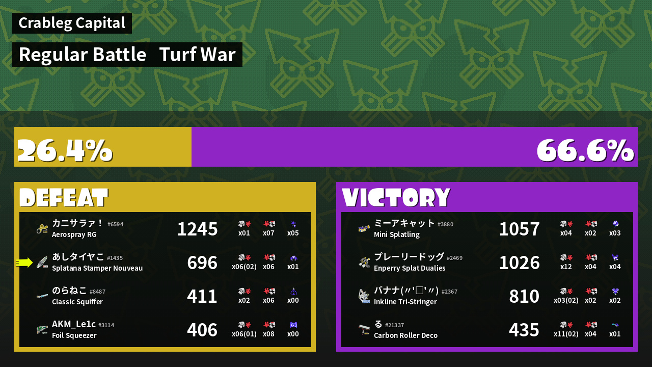 | Weapon | Splatana Stamper Nouveau ( Toxic Mist / Crab Tank) | ||