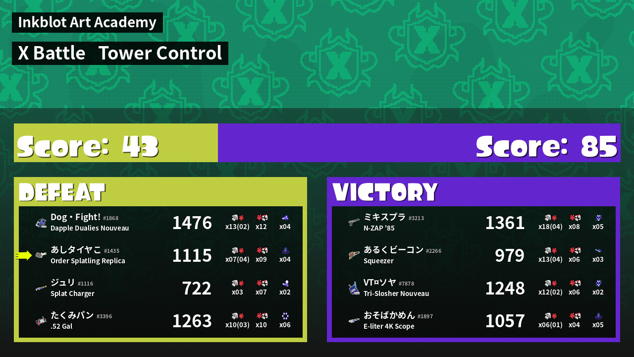 | Medals | Record-Score Setter #1 Super Jump Spot #1 Splat Assister | ||