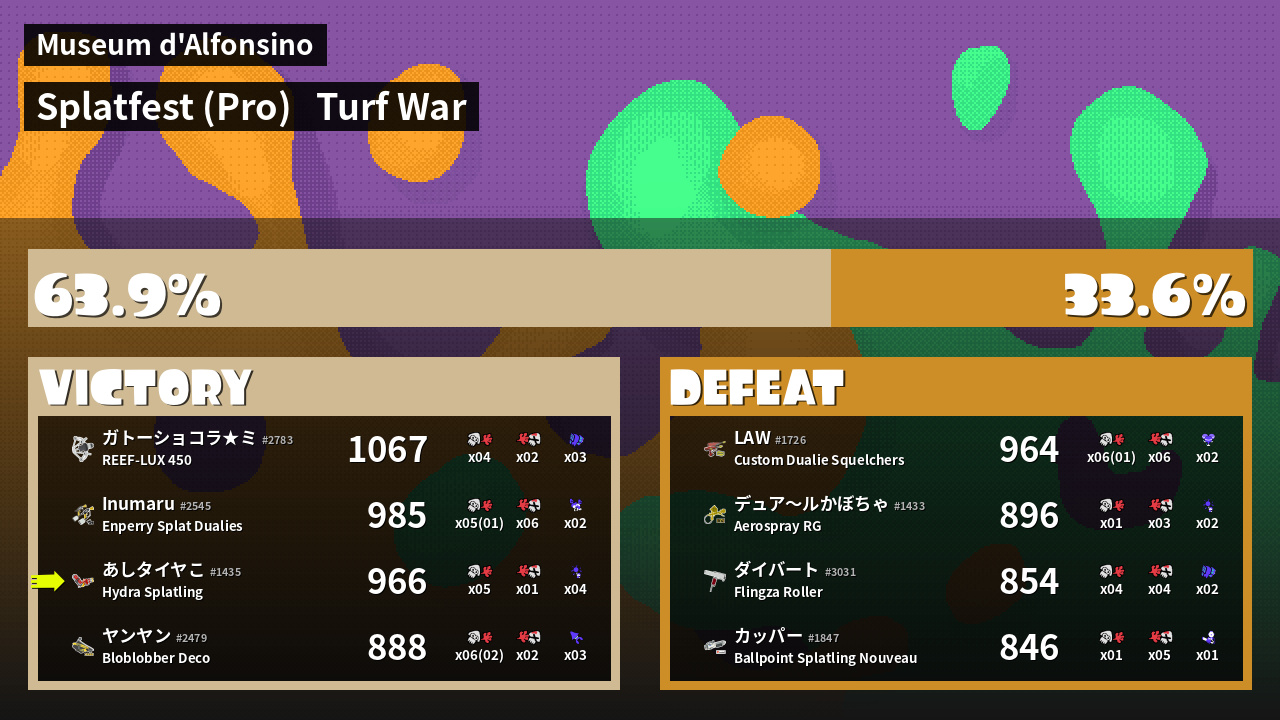 | Medals | #1 Enemy Splatter #1 Damage Taker First Splat! | ||