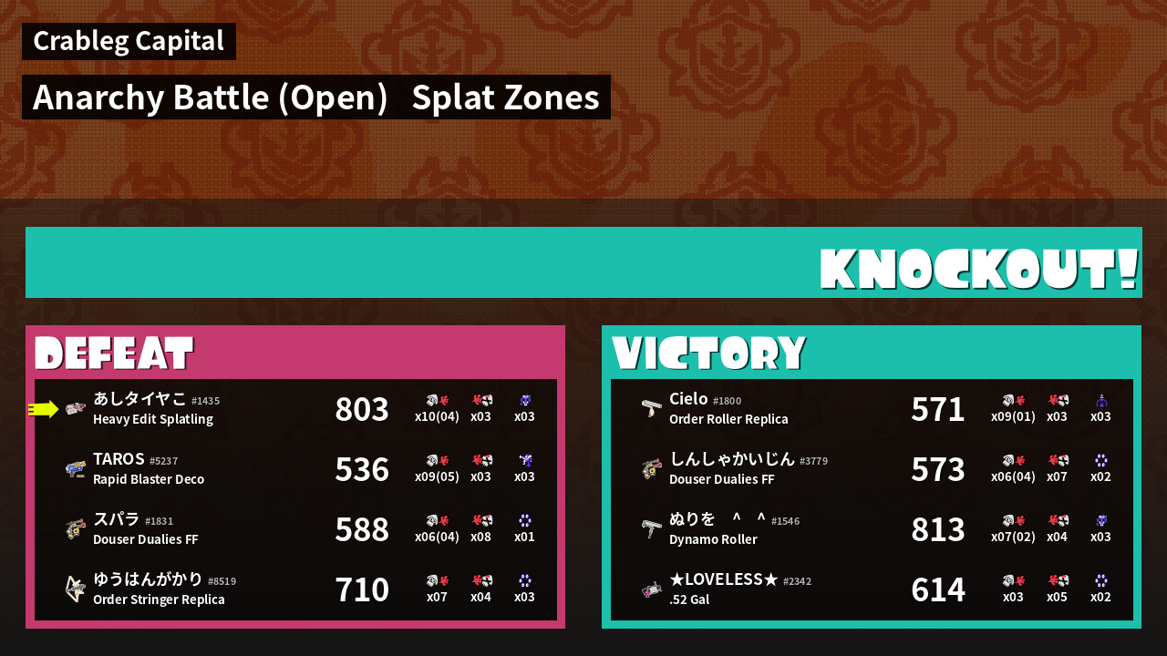 | Mode | Splat Zones - Anarchy Battle (Open) | ||
