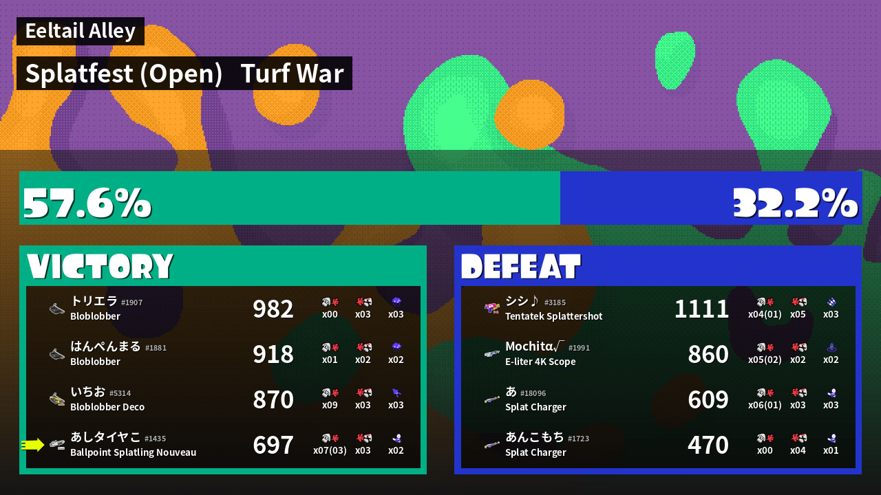 | Medals | #1 Popular Target #1 Splat Assister #1 Damage Taker | ||