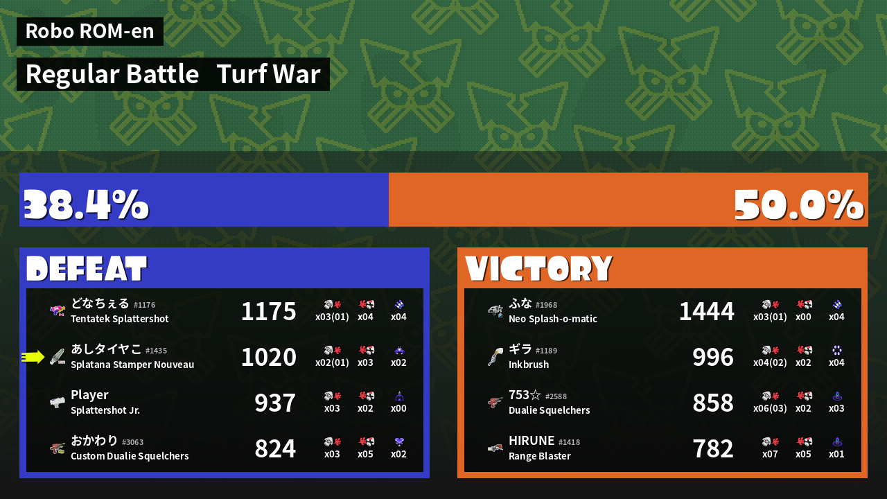 | Medals | #1 Enemy-Base Inker #1 Splat Assister #1 Crab Tank User | ||