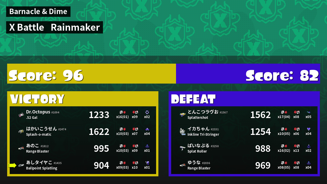 | Mode | Rainmaker - X Battle | ||