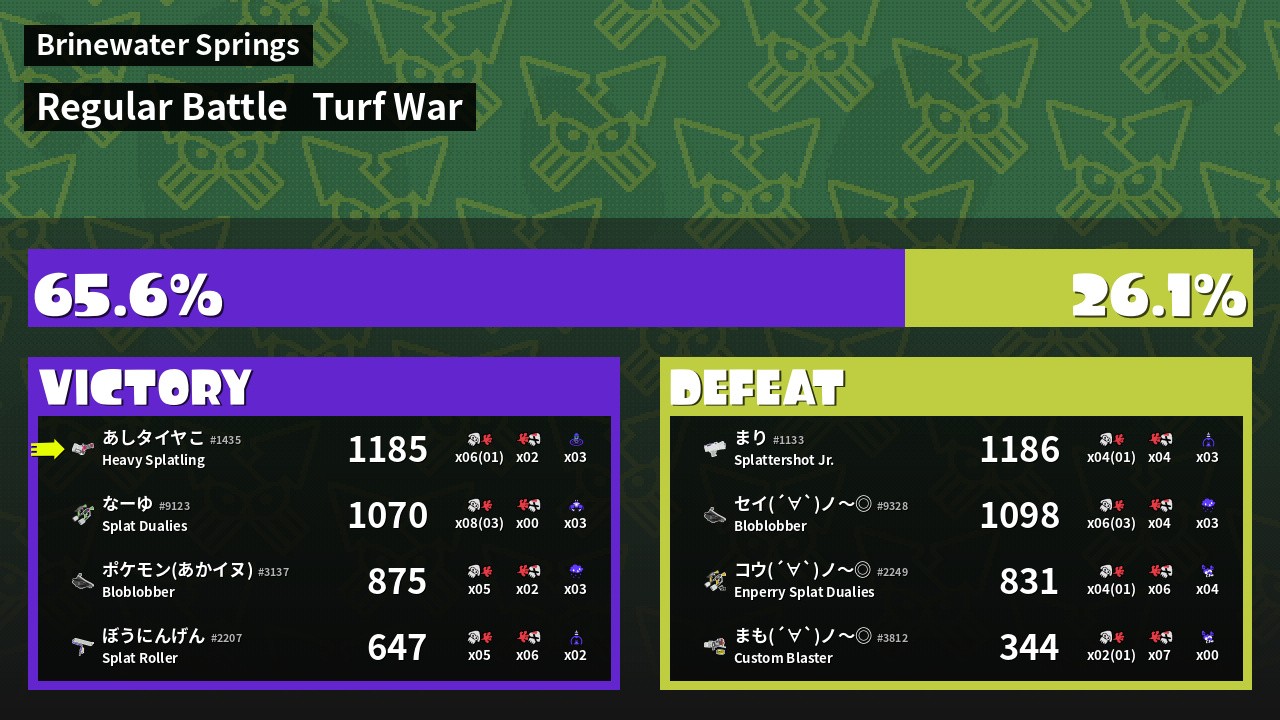 | Medals | #1 Turf Inker #1 Popular Target #1 Enemy-Base Inker | ||