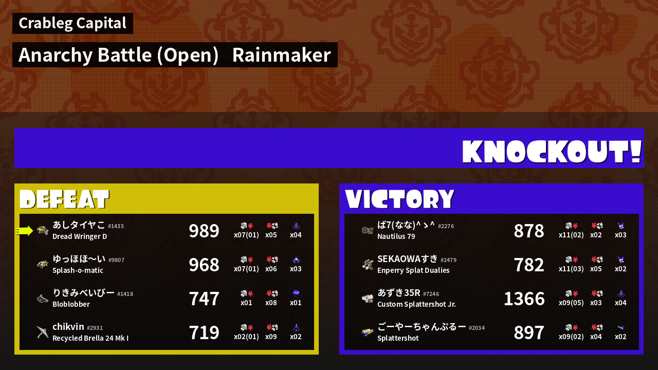 | Mode | Rainmaker - Anarchy Battle (Open) | ||