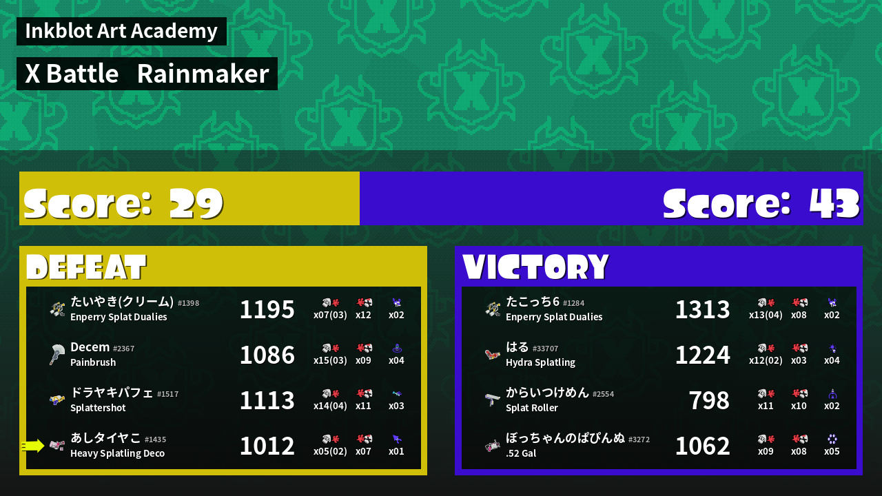 | Mode | Rainmaker - X Battle | ||
