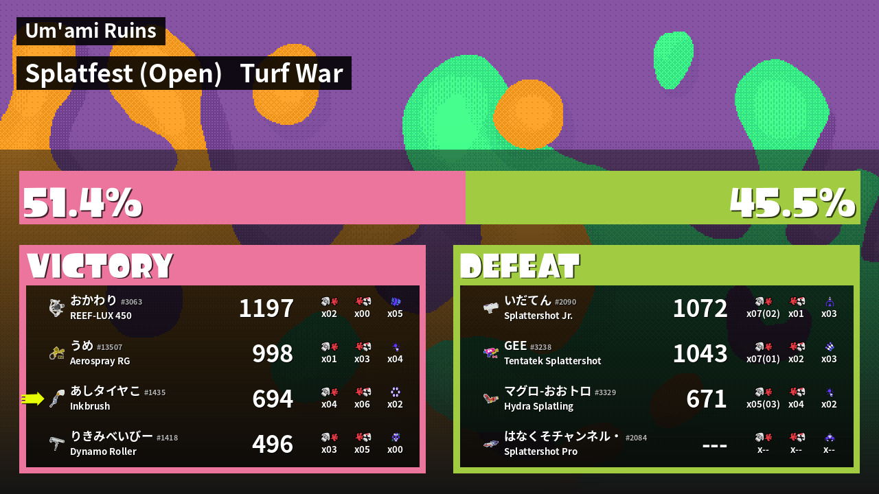 | Mode | Turf War - Splatfest (Open) | ||