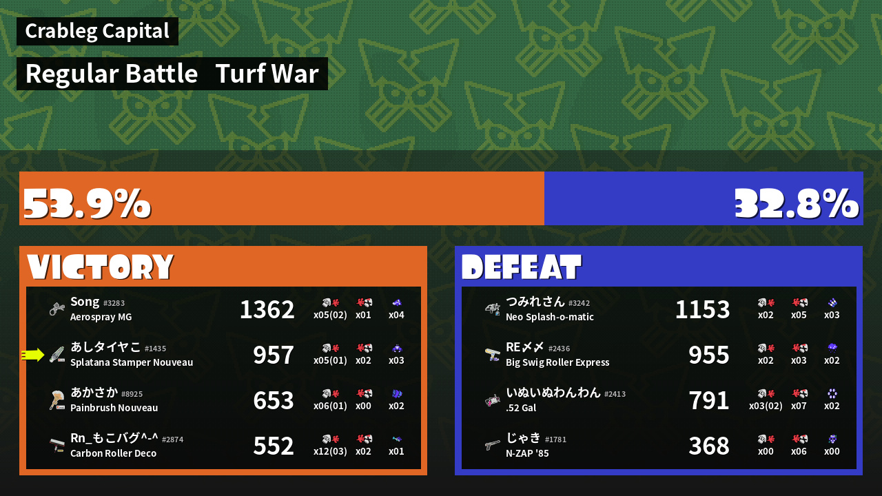 | Mode | Turf War - Regular Battle | ||