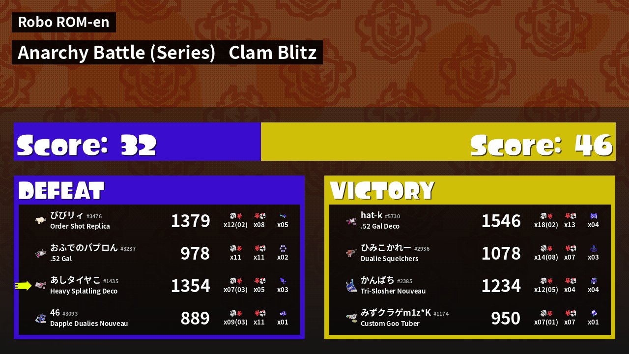 | Mode | Clam Blitz - Anarchy Battle (Series) | ||