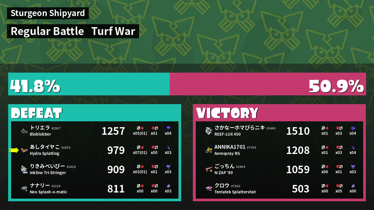 | Mode | Turf War - Regular Battle | ||