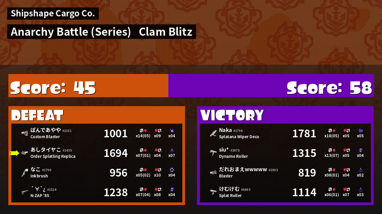 | Mode | Clam Blitz - Anarchy Battle (Series) | ||