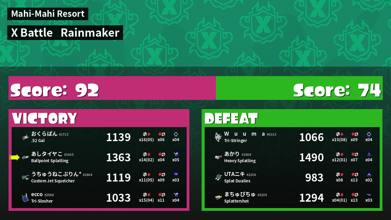 | Medals | #1 Turf Inker #1 Super Jump Spot #1 Enemy Splatter | ||