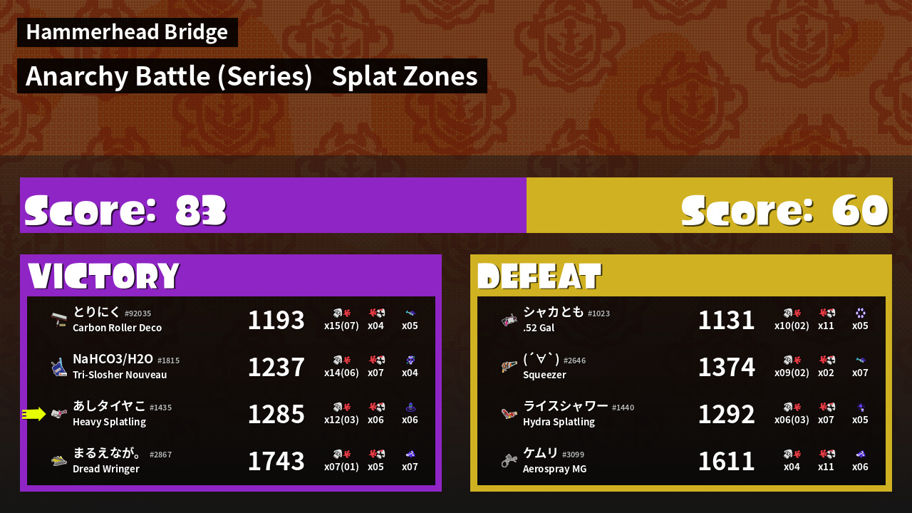 | Mode | Splat Zones - Anarchy Battle (Series) | ||