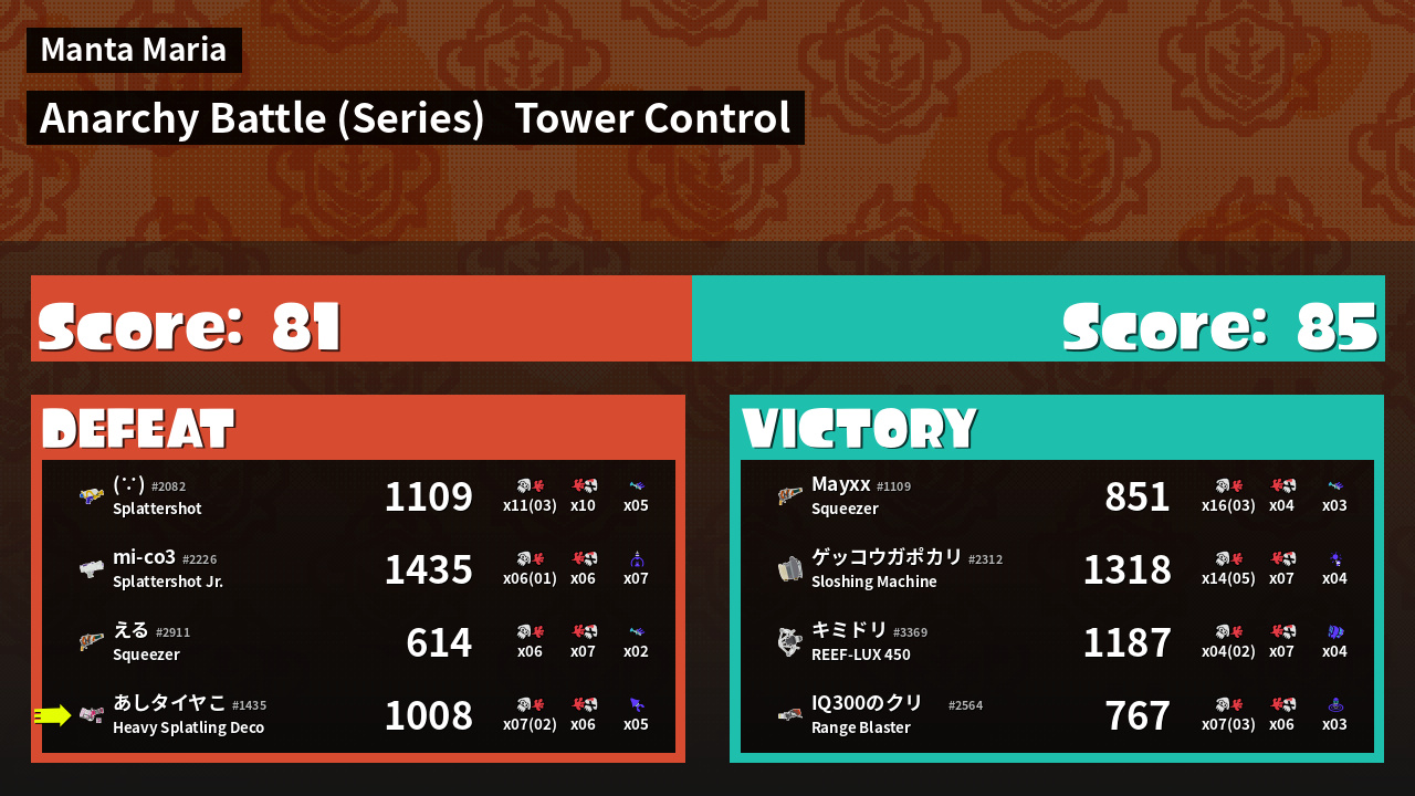 | Mode | Tower Control - Anarchy Battle (Series) | ||