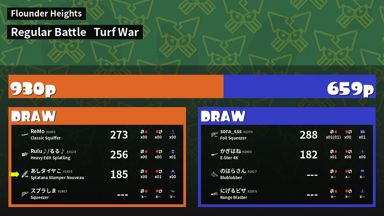 | Mode | Turf War - Regular Battle | ||