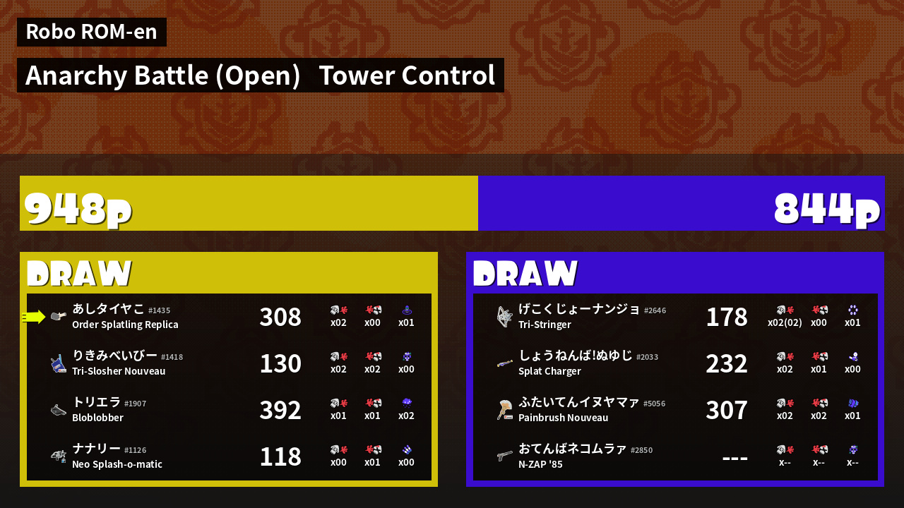 | Mode | Tower Control - Anarchy Battle (Open) | ||