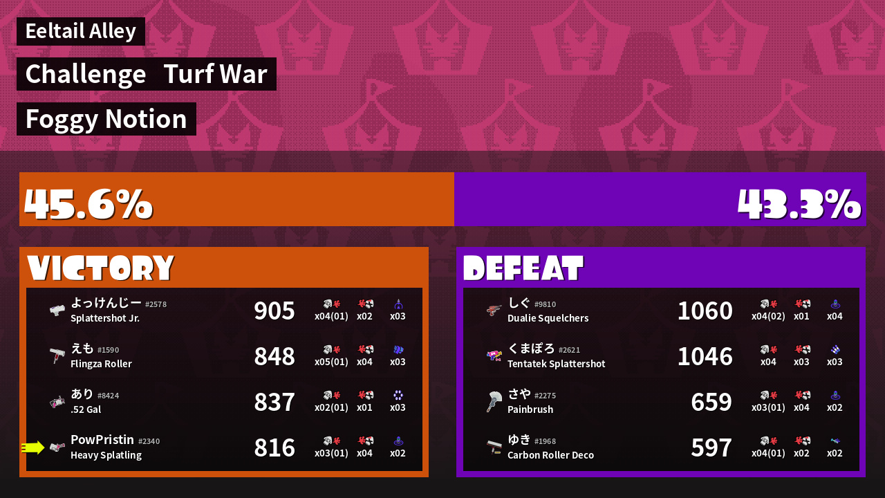 | Mode | Turf War - Challenge | ||