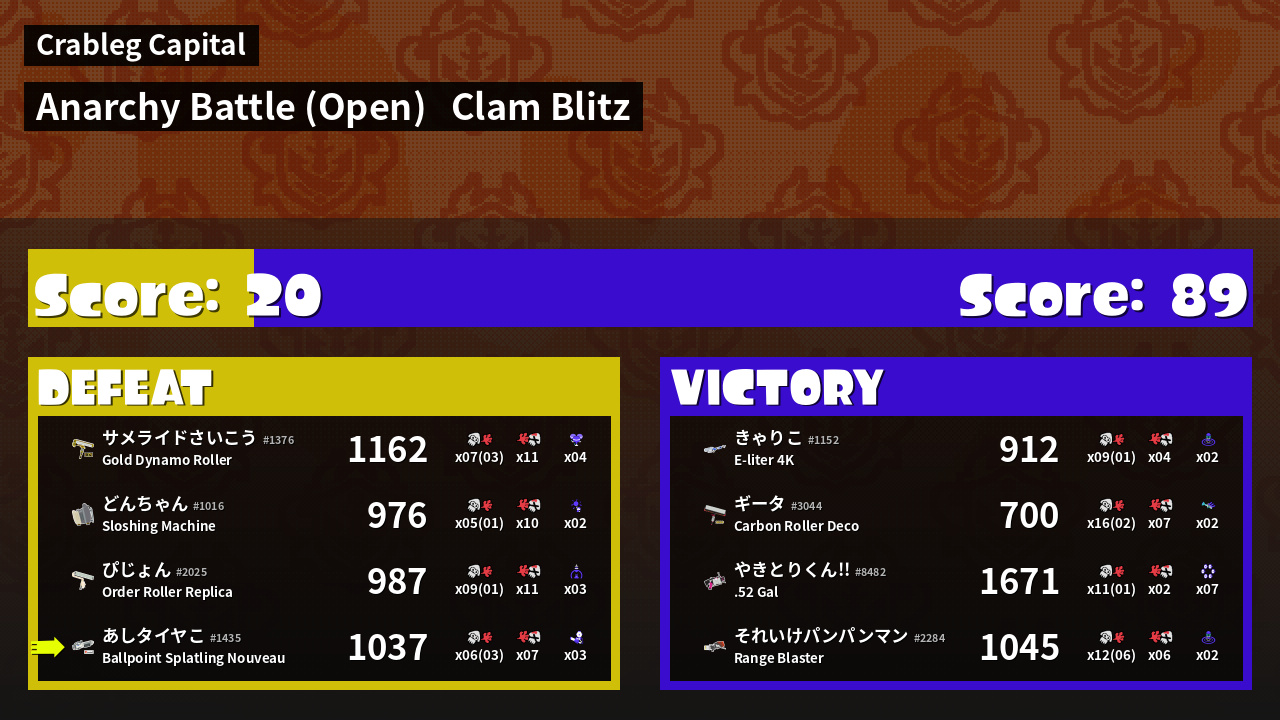 | Mode | Clam Blitz - Anarchy Battle (Open) | ||