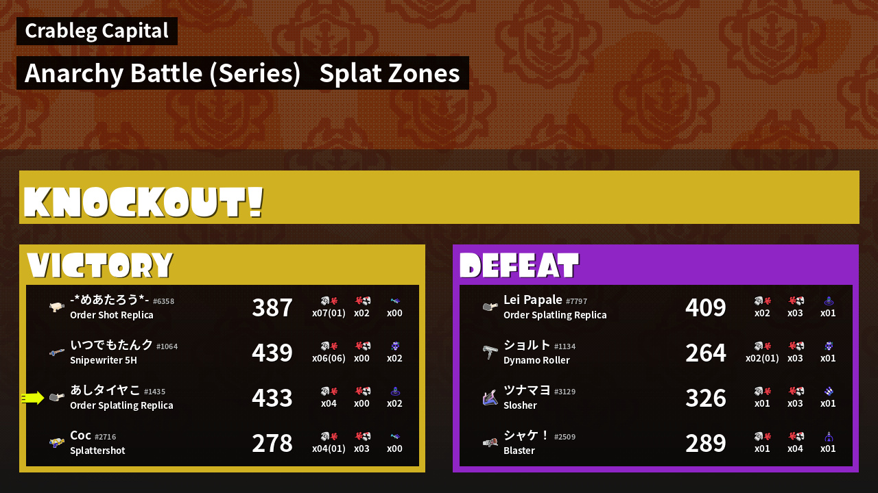 | Mode | Splat Zones - Anarchy Battle (Series) | ||