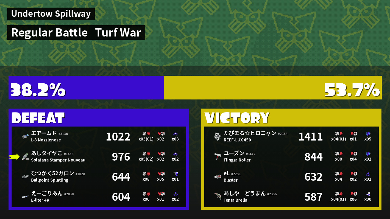 | Medals | #1 Enemy-Base Inker #1 Splat Assister #1 Ink Consumer | ||