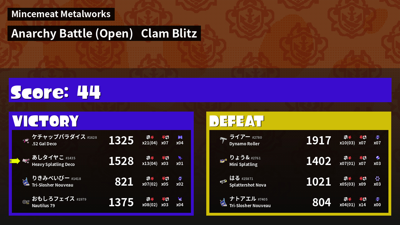 | Mode | Clam Blitz - Anarchy Battle (Open) | ||