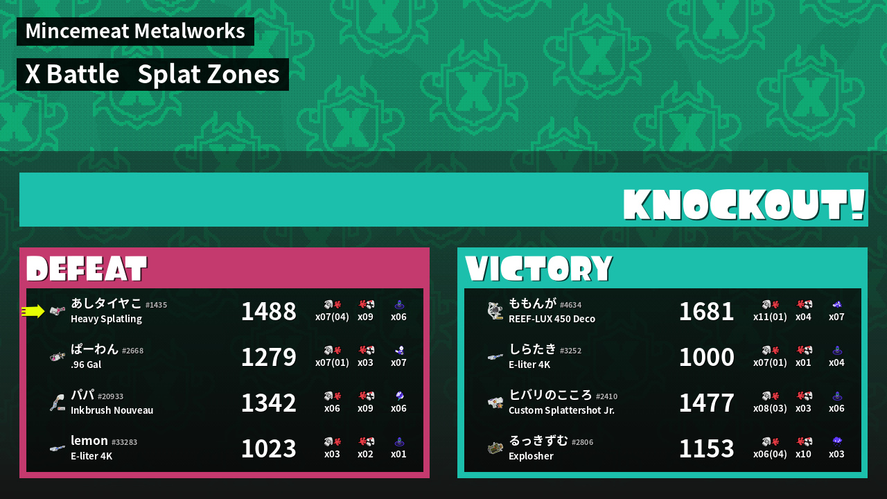 | Medals | #1 Overall Splatter #1 Splat Zone Inker #1 Turf Inker | ||