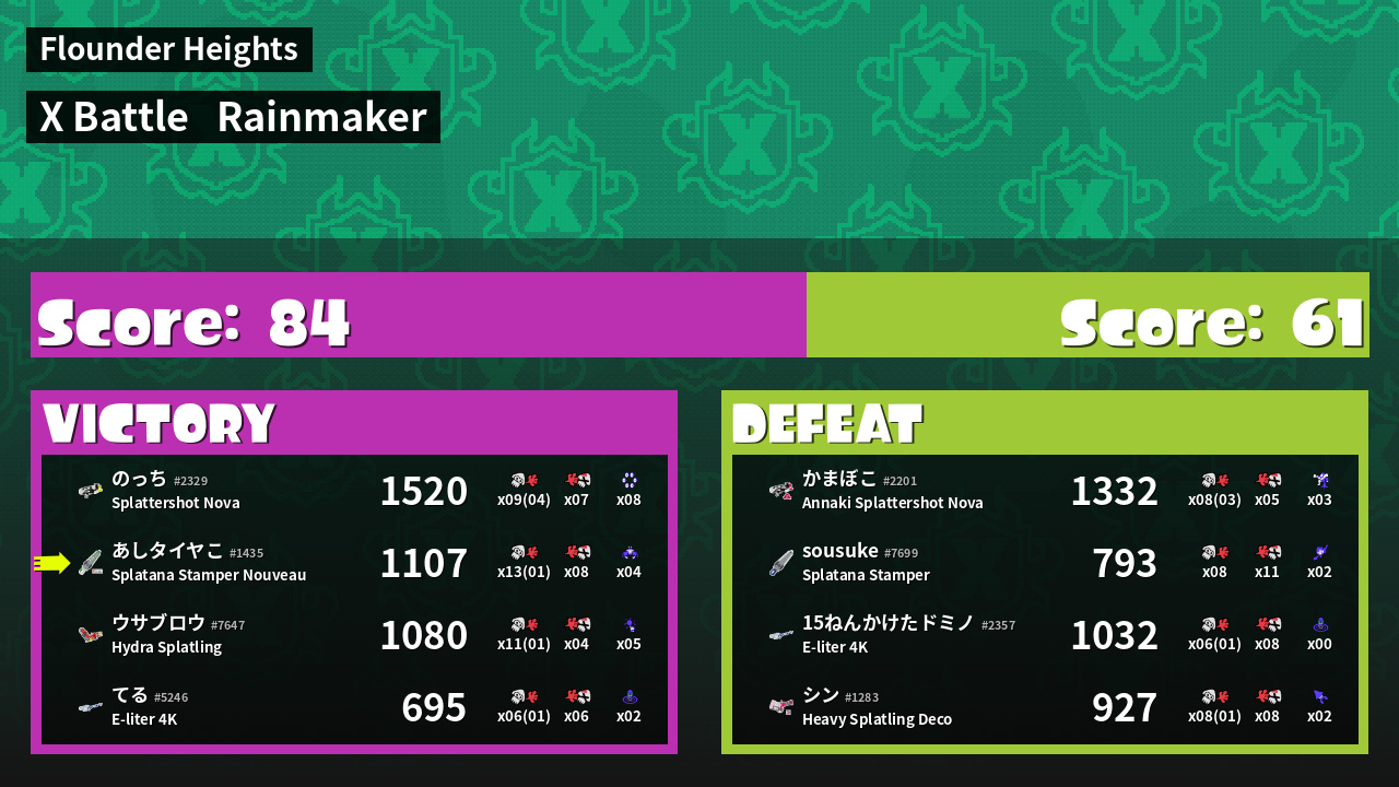 | Medals | #1 Overall Splatter #1 Enemy Splatter #1 Rainmaker Stopper | ||