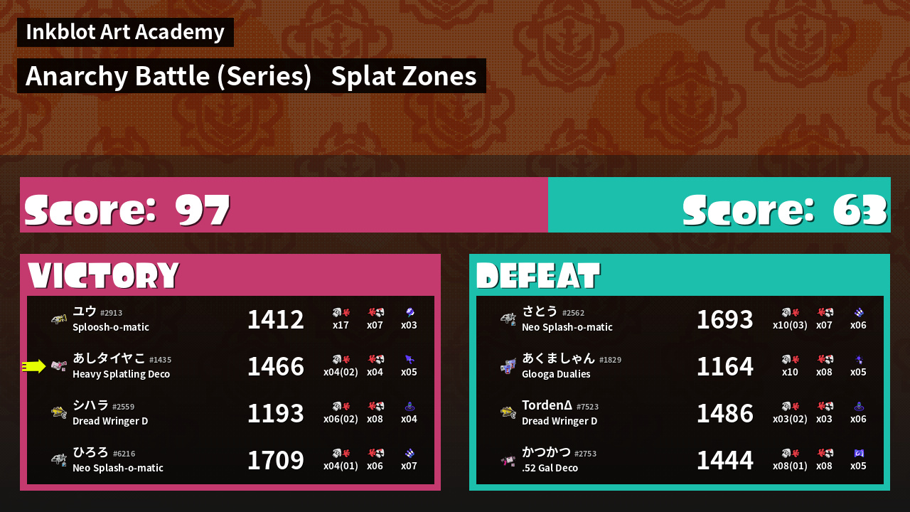 | Mode | Splat Zones - Anarchy Battle (Series) | ||