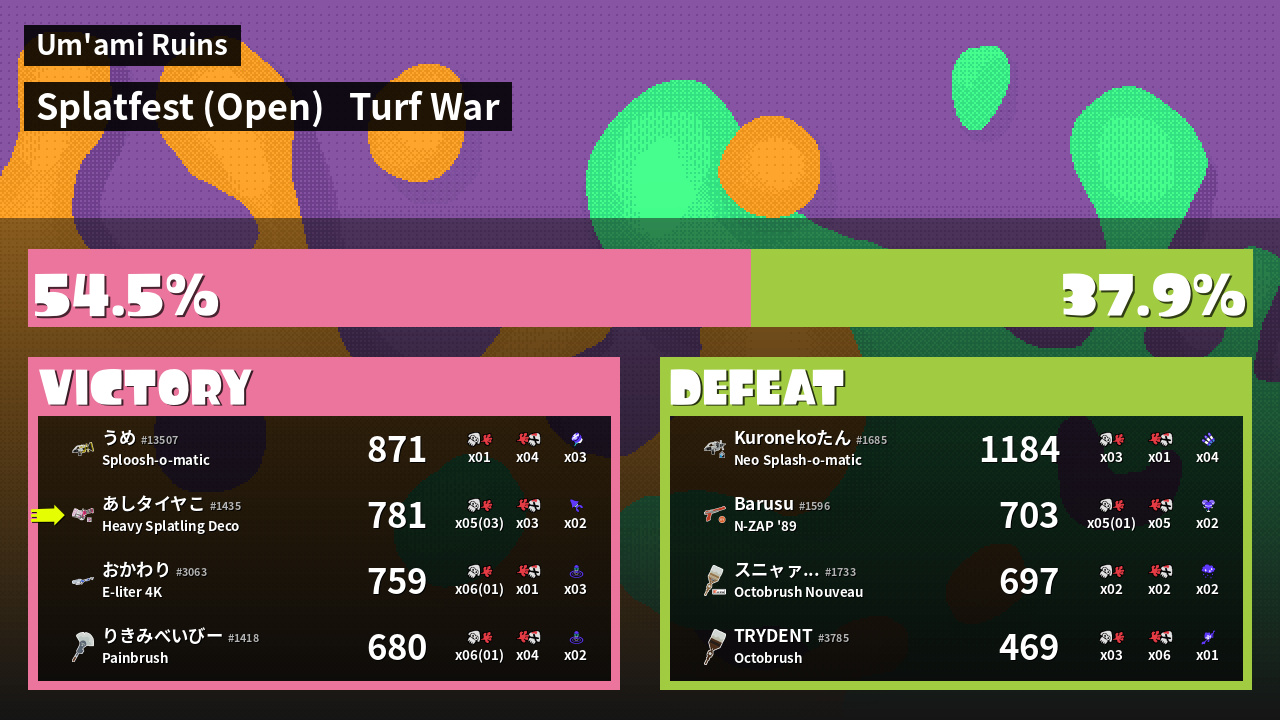| Medals | #1 Splat Assister #1 Kraken Royale User #2 Turf Inker | ||