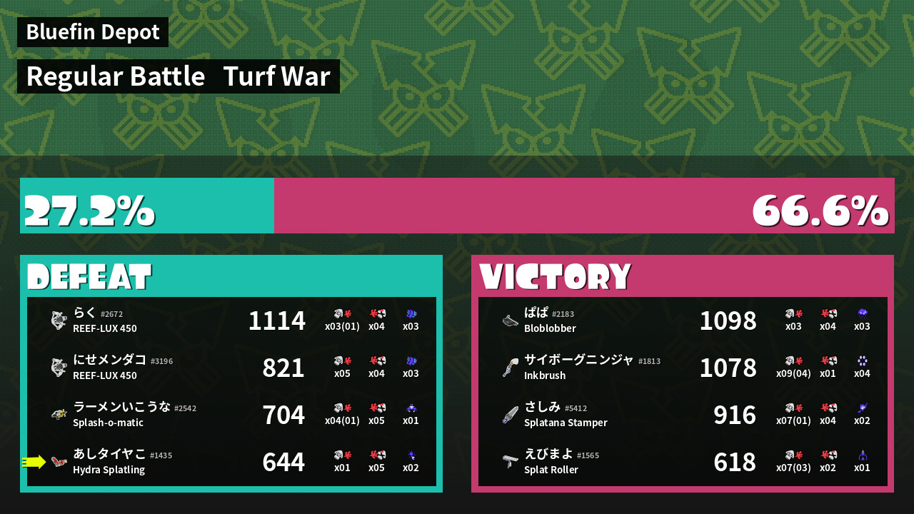 | Mode | Turf War - Regular Battle | ||