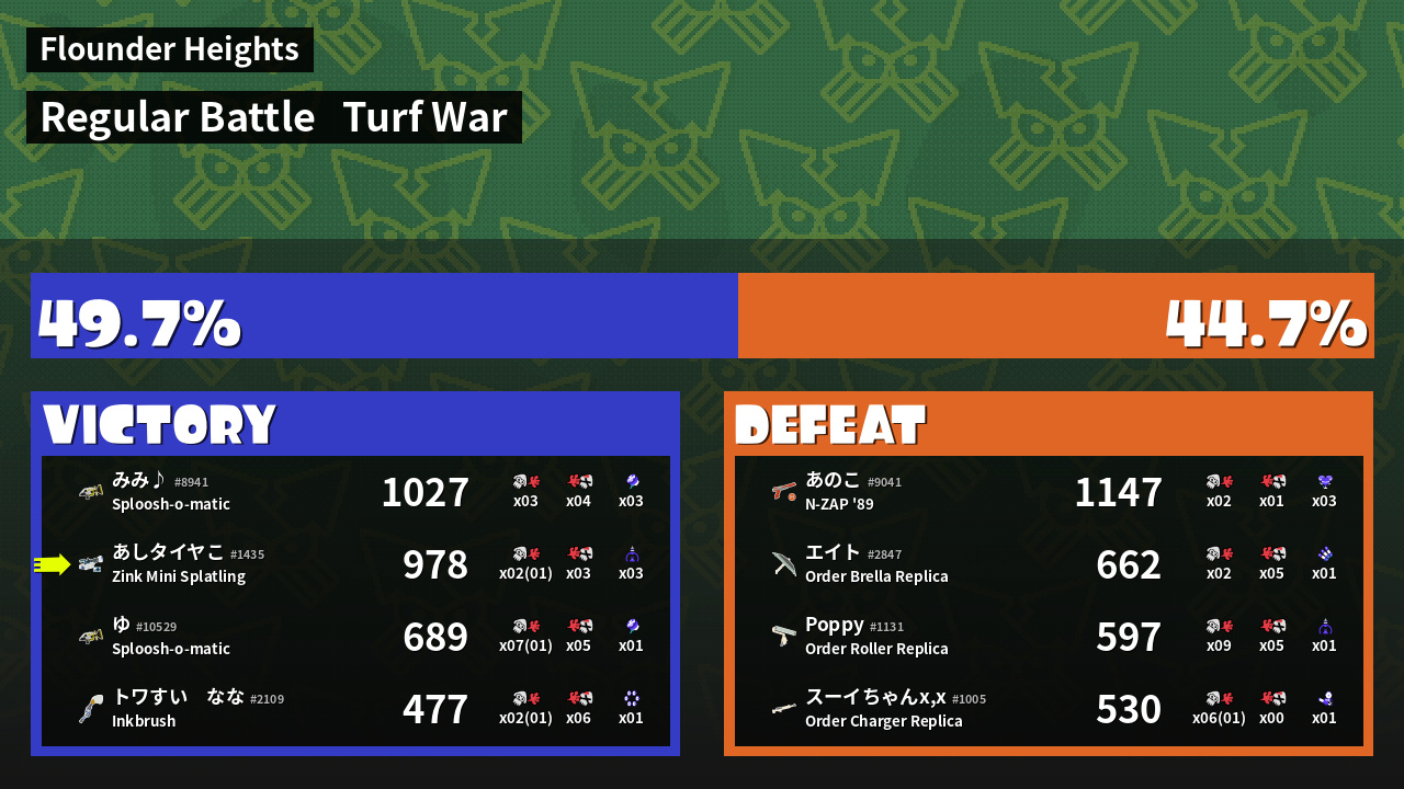 | Mode | Turf War - Regular Battle | ||