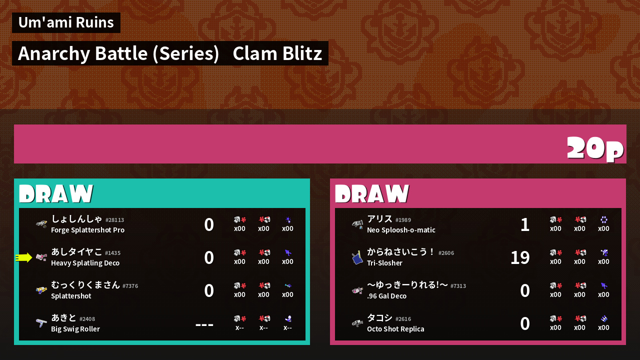 | Mode | Clam Blitz - Anarchy Battle (Series) | ||