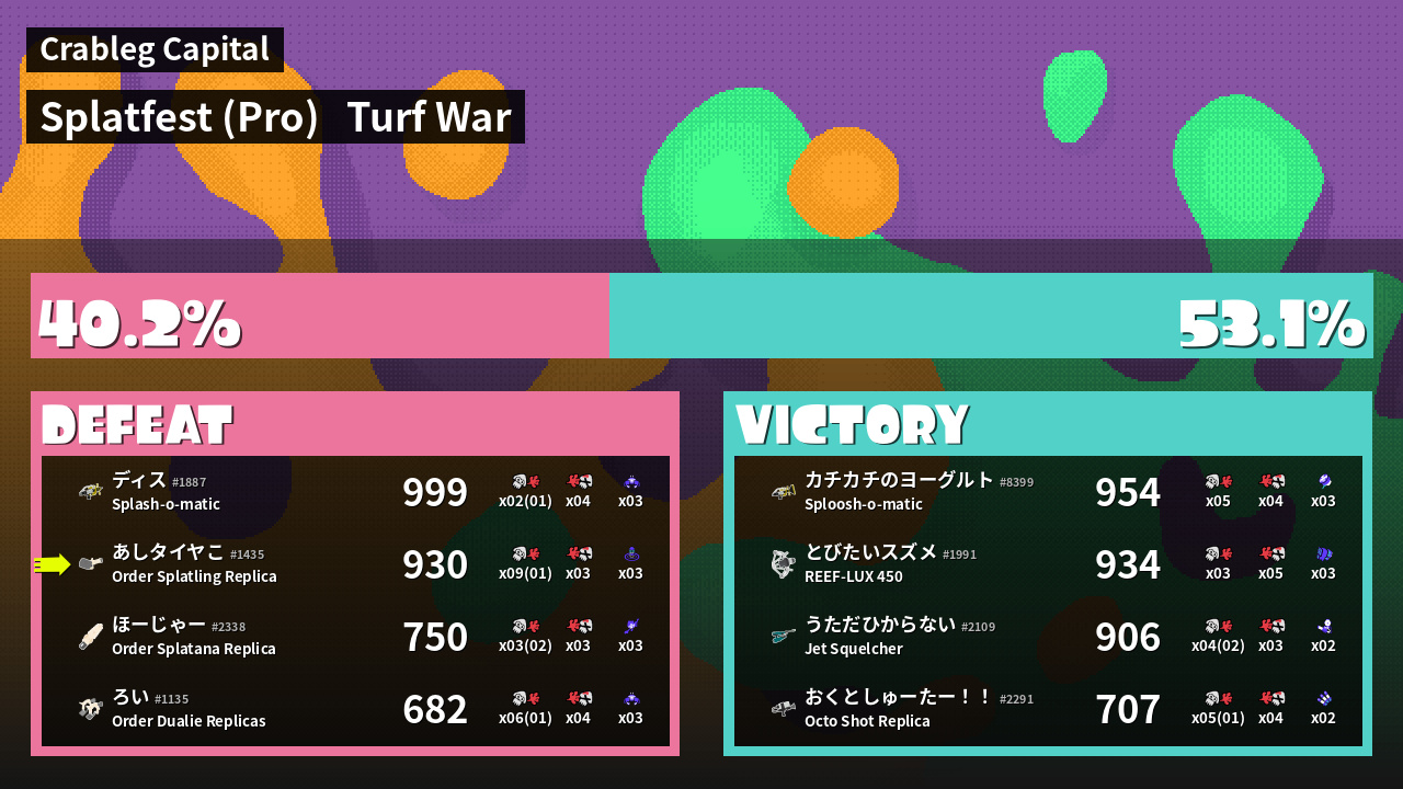 | Mode | Turf War - Splatfest (Pro) | ||