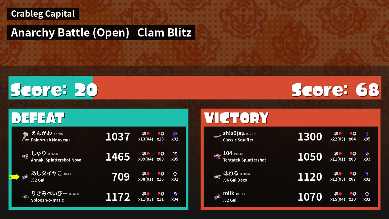 | Mode | Clam Blitz - Anarchy Battle (Open) | ||
